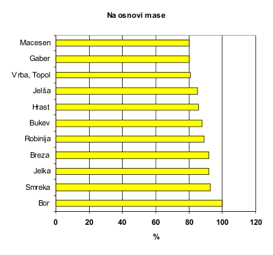 Primerjava energijskih vednosti drevesnih vrst na osnovi mase (osnova je energijska vrednost Bora)